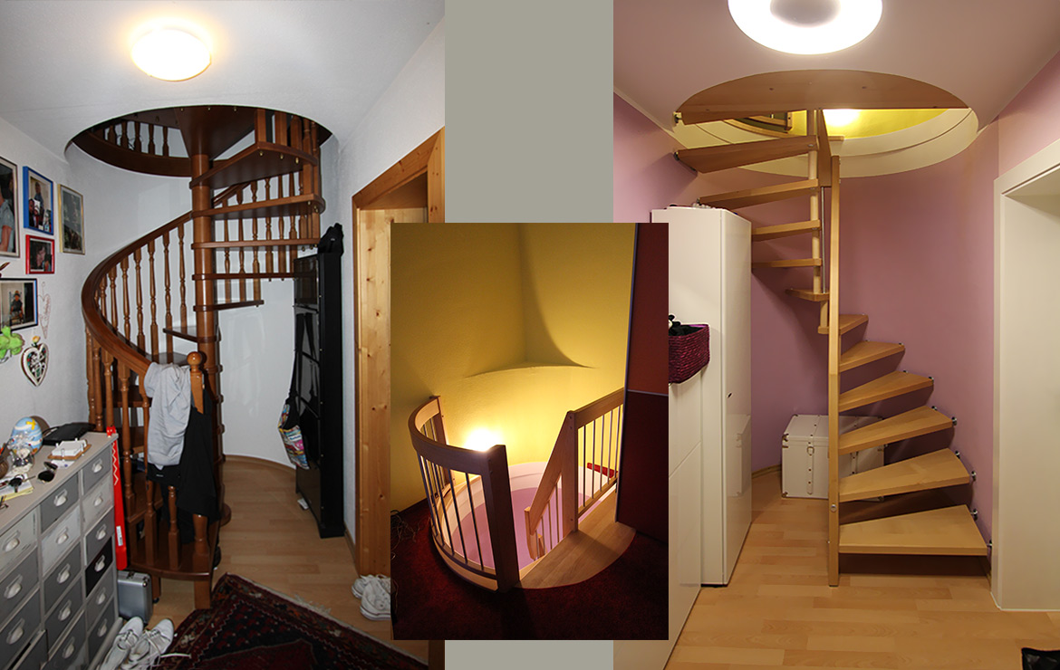 Der Charakter des Entrés wird durch eine neue Treppe wohnlicher, oft heller und freundlicher, sowie zeitgerechter und sicherer.