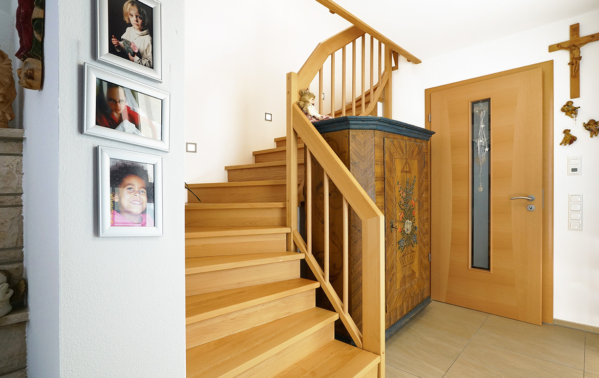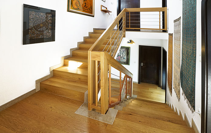 Mit Hartholz, wie z.B. Eiche, Buche oder Esche treffen Sie eine gute Wahl. Mit unserem Hartwachsöl ist die Stufe dann so geschützt, dass Sie lange Freude daran haben.
