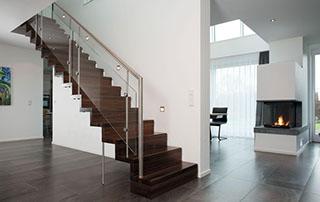 Die Bolzentreppe (Bolero) bietet eine große individuelle Gestaltungsfreiheit. Sie benötigt zur Stabilität kein Geländer (selbsttragende Treppe). Wenn Sie eine Treppe suchen, die optisch leicht wirkt, ist die Bolero-Serie die richtige Entscheidung. Bewährte Treppenbaukunst vereint sich mit modernen Konstruktionselementen.