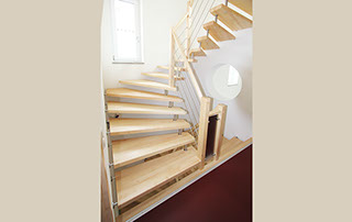 Mit der großen Auswahl an unterschiedlichen Geländervarianten gestalten Sie Ihre Bolero-Treppe ganz nach Ihren Wünschen. Auch bei wenig Raum für das Treppenhaus, ist die Bolzen-Treppe eine gute Wahl.
