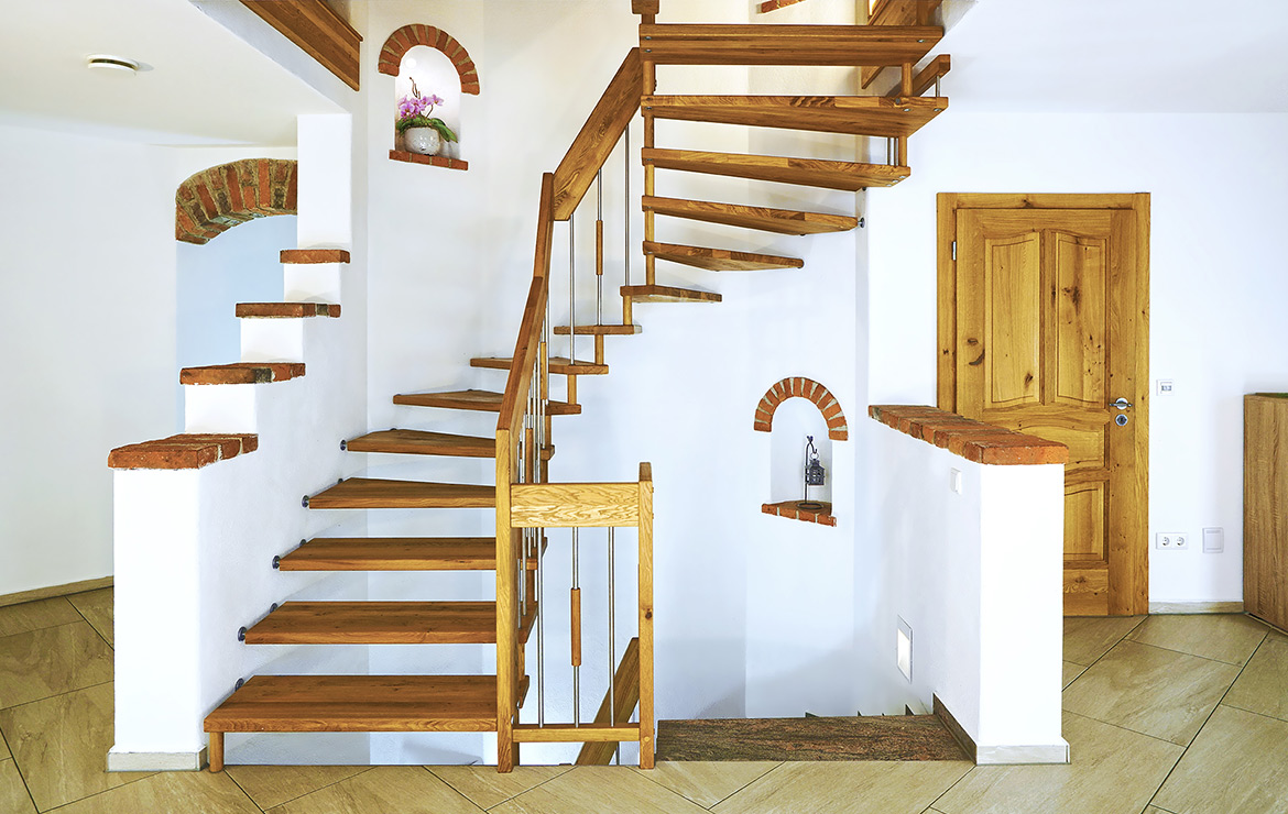 Eine große Menge unterschiedlichster Geländerformen und Materialien sind möglich. Die Holzarten können Sie auf unserer Seite auswählen. Weiter zu den Holzarten.